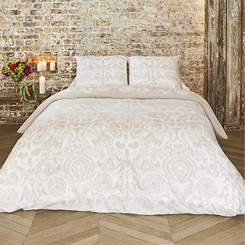 Housse de couette/parure de lit soleil d ocre parure de lit coton lavé bicolore lin/taupe 240x220 cm.